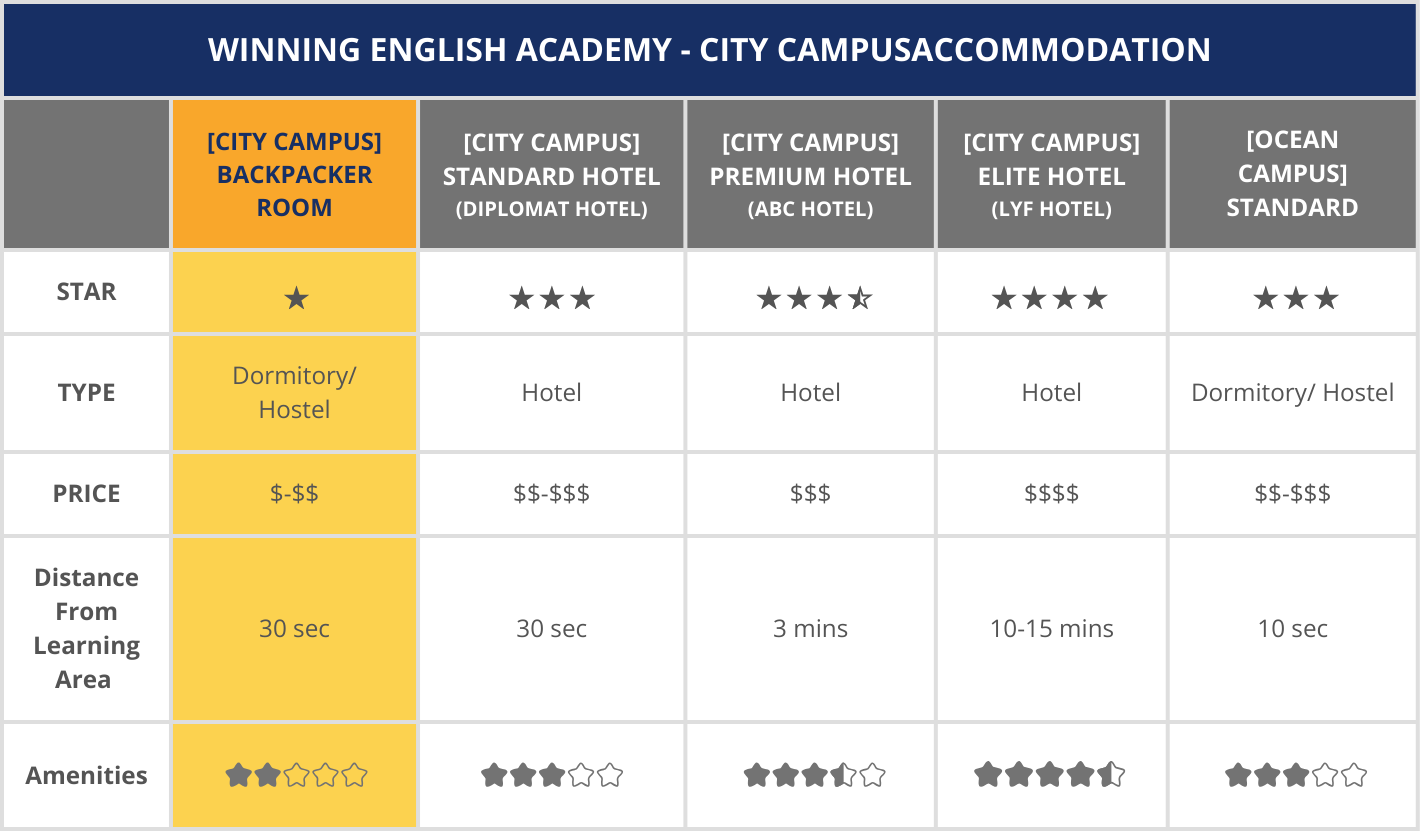 **위닝 잉글리시 아카데미(WINNING English Academy)**는 합리적인 예산으로 숙박을 찾는 분들을 위해 **‘백패커룸 숙소(Backpacker Room Accommodation)’**를 제공합니다.